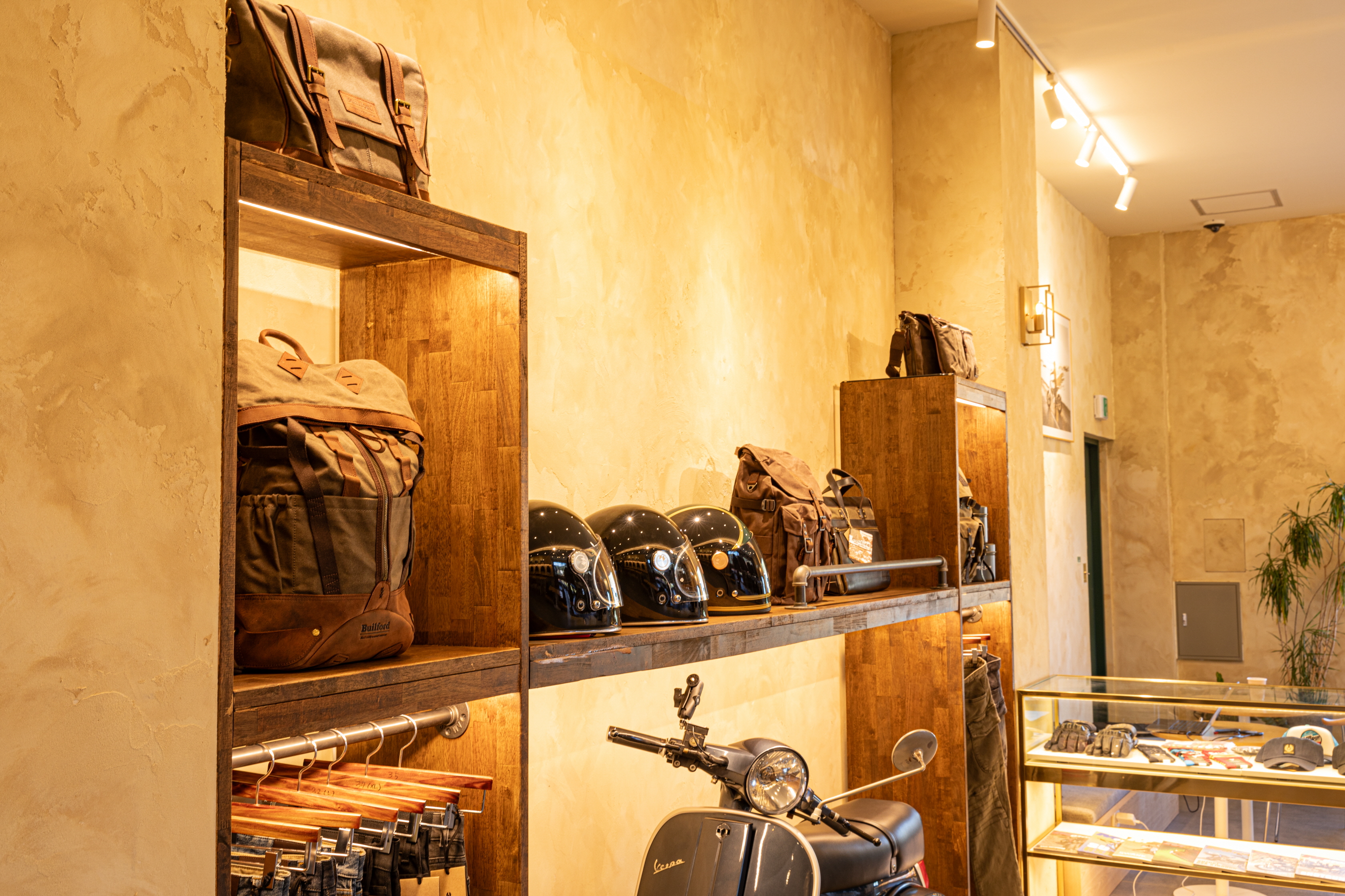 멋진 자켓, 가방들을 보유하고 있습니다.