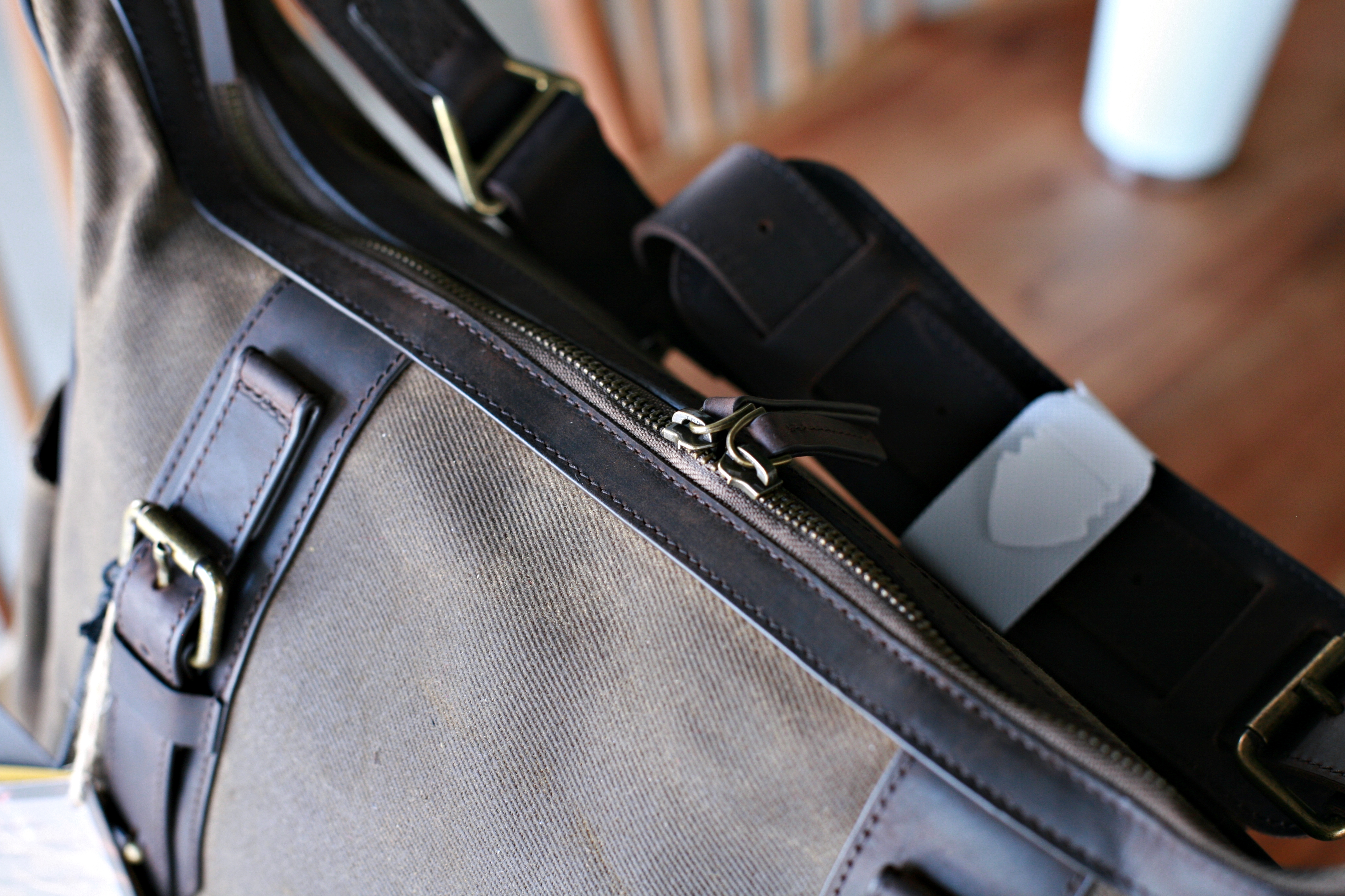 어깨 끈은 전체가 가죽입니다.